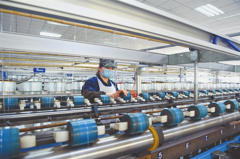 春节期间,位于上犹县工业园南区的元源新材料有限公司生产车间内,工人忙着赶制订单。该企业科学安排调度,加强后勤保障,开足马力忙生产。本报全媒体记者 焦俊杰摄