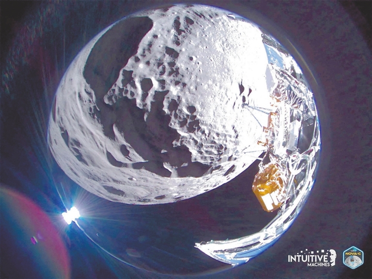这张由“直觉机器”公司2月23日提供的照片显示的是月球着陆器“奥德修斯”拍摄的月球景象。