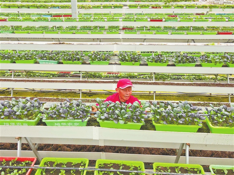 近日,在南昌溪霞现代农业园,农民正在蔬菜智能大棚里忙着育苗、移栽、施肥,棚内绿意盎然,呈现出一派人勤春早的农忙景象。
