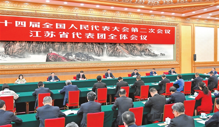 在认真听取大家发言后,习近平作了发言。他首先表示赞成政府工作报告,充分肯定江苏经济社会发展取得的新进展新成效,希望江苏坚定信心、鼓足干劲、勇挑大梁,为全国大局作出更大贡献。