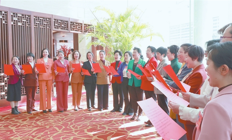 3月8日,临近午餐时间,江西代表团的女代表和女工作人员相约来到餐厅,唱响《长江之歌》,唱出女代表祝福祖国的心声,用歌声庆祝属于自己的节日。