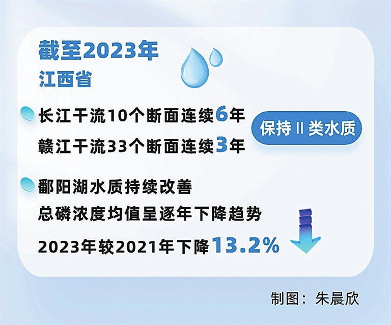 通过“大保护”重拳出击,解决了一批“老大难”问题。鄱阳湖水质持续改善,总磷浓度均值呈逐年下降趋势,2023年较2021年下降13.2%。