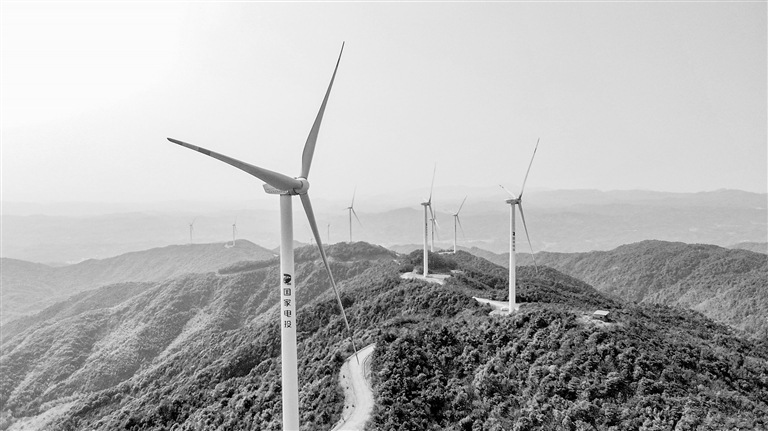 3月8日,定南县历市镇寨上村,一台台风电机组矗立在群山之巅,不断输送绿色能源。近年来,该县大力发展风电产业,促进区域节能降耗、低碳减排,实现生态效益和经济效益双赢。特约通讯员 詹继成摄