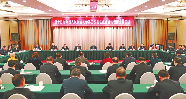 | 十四届全国人大二次会议江西代表团举行全体会议。本报全媒体首席记者 海 波 摄 |