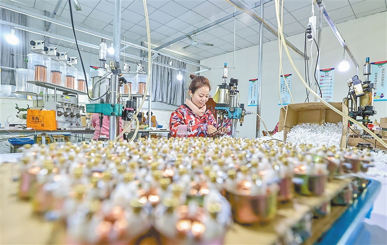 ▲近日,在湖口县舜德乡一家电子元件厂,当地农村妇女正在车间赶制订单。近年来,湖口县将就业岗位送到群众家门口,帮助妇女实现就业。 通讯员 吴 江摄