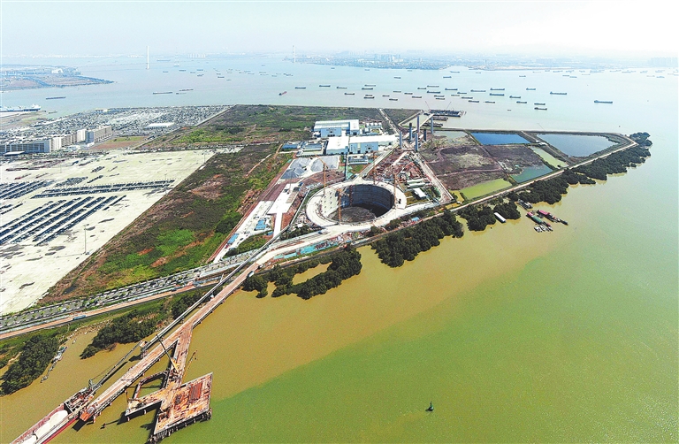 狮子洋通道是继港珠澳大桥、深中通道后,粤港澳大湾区又一超级工程。目前,狮子洋大桥主塔正在进行承台施工,预计今年内实现主塔高度突破100米以及完成锚碇填芯施工,计划2028年建成通车。新华社记者 邓 华摄