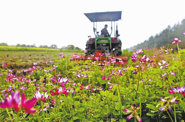 3月13日,在靖安县水口乡桃源村,村民正驾驶农机翻耕稻田。春暖花开时节,该县农民积极开展春耕生产,田间地头一派农忙景象。