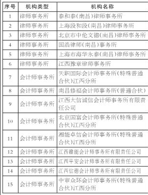 根据《关于江西江报翰林置业开发有限公司变更服务类供应商名单的公告》,通过各供应商报名及我司评审,现将变更后的律师事务所和会计师事务所名单公示如下,公示期为刊登之日起5个工作日。