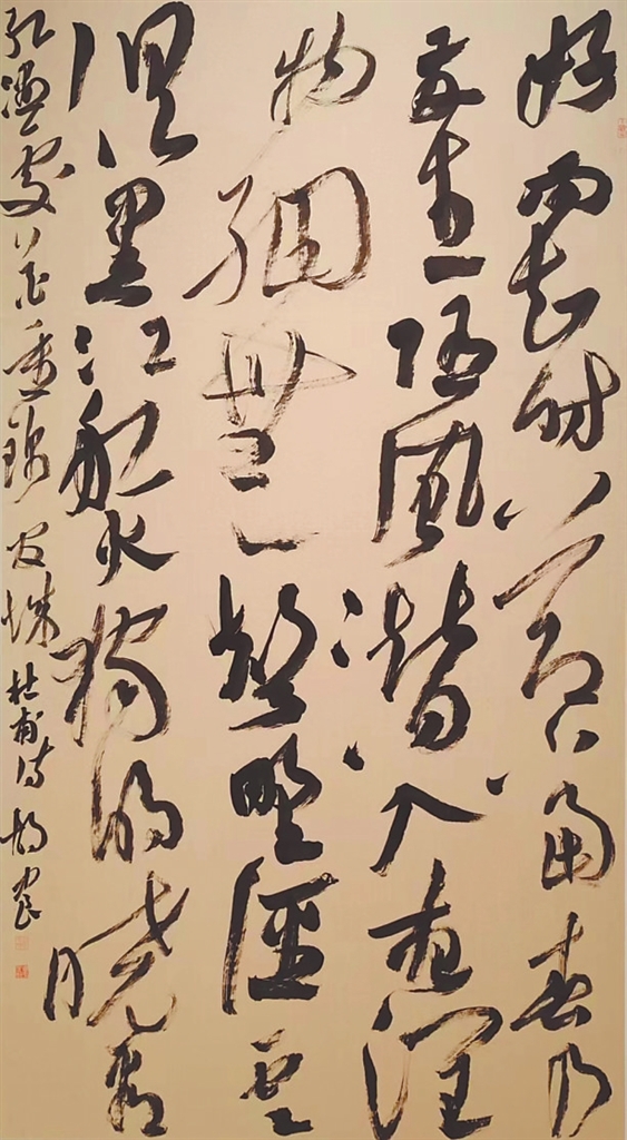草书 《杜甫·春夜喜雨》 释文:好雨知时节,当春乃发生。随风潜入夜,润物细无声。野径云俱黑,江船火独明。晓看红湿处,花重锦官城。胡中良书