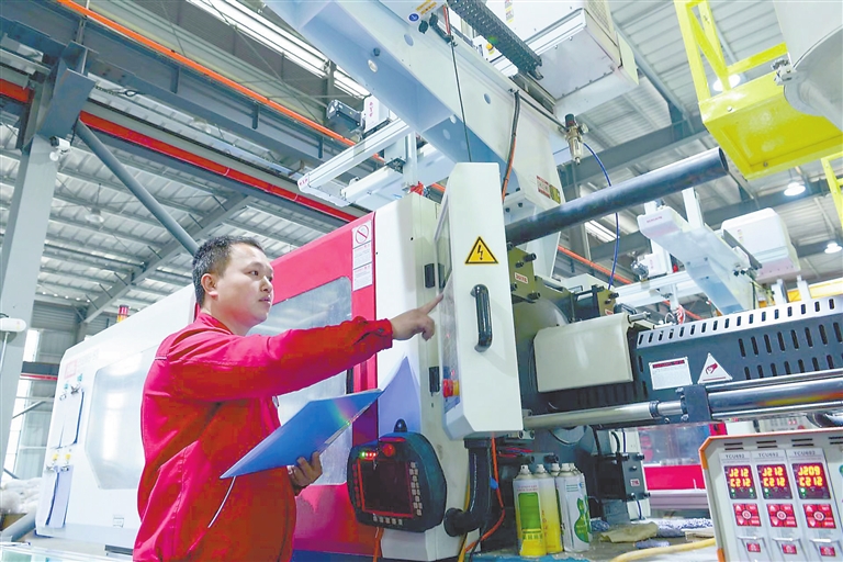 3月11日,宁都工业园江西犀瑞制造有限公司注塑车间内,工人正忙着赶制订单。今年以来,该县优服务、保要素,帮助企业纾困解难,奋力冲刺首季开门红。 本报全媒体记者 曹章保摄
