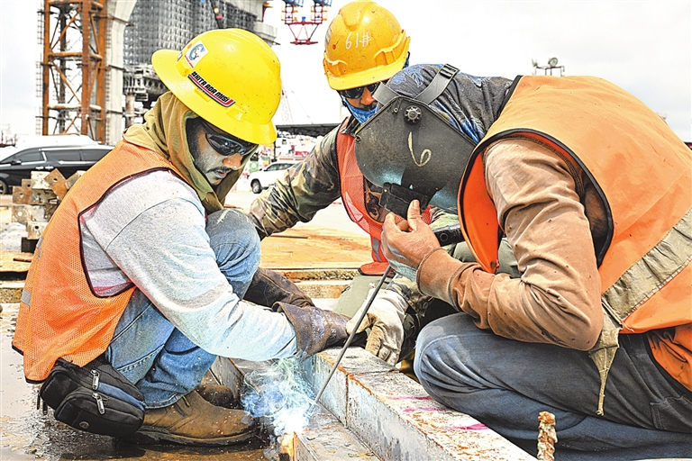 工地上机器隆隆作响,连接马来西亚柔佛州与新加坡的跨国轻轨项目——柔新捷运系统(RTS)水上段高架的建设工人正在紧张地工作。RTS是一条双轨轨道交通线路,预计2026年年底建成。中国交通建设(马来西亚)有限公司RTS水上段高架项目办公室经理黄义力说:“在不同国家的项目中,我们不仅为当地带去中国方案、中国技术与中国智慧,还吸纳了不少有责任和能力的外籍员工,与我们一起到更多国家建设‘一带一路’。”