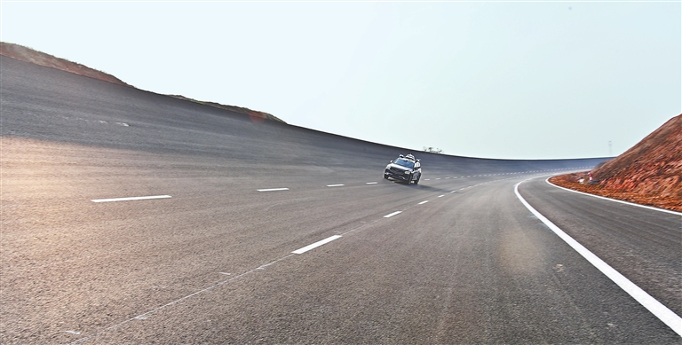 作为国内首家集智能驾驶测试与传统测试于一体的大型综合类对外运营试验场,江西上饶汽车试验场设计最高平衡车速为240公里/小时,最高测试车速能达到300公里/小时,处于国际一流、国内领先水平。俯瞰全长7.19公里的高速环道,在山水之间展示着流畅的弧线,“其中有4.56公里弯道部分的摊铺,是整个施工环节的重中之重,也是技术难点。”中交一公局集团江西上饶汽车试验场项目工区主任刘国旺坦言,为达到设计技术体系要求和日后汽车试验标准,项目团队最终采用“布劳斯曲线、3次抛物线设计”的方式,精准计算出18.7万个控制数据,充分满足汽车行驶重心轨迹特性,确保高速环道几何线形设计及曲面施工成型控制达到技术要求。