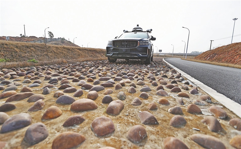 在建成投用的智能网联测试区,已实现5G网络、高精度定位全覆盖,包含高速公路、城市街景、乡村公路、柔性测试区、无人驾驶汽车路考区等5个测试区,智能化感知设备一应俱全,为车辆试验和信号感知、数据中心分析提供全方位技术支持。通过“数字孪生”技术,项目团队将测试情况实时反映在数字化界面上,为应对超速、行人横穿马路和避障等突发情况保驾护航。