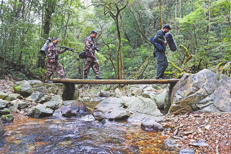 3月19日,春日的清晨还有几分凉意,江西九连山国家级自然保护区管理局的工作人员陈志高、卓小海、徐国良带着设备,钻进了保护区核心区的原始森林,开始日常巡护和科研监测。“3·21”国际森林日前夕,本报记者走进位于龙南的江西九连山国家级自然保护区,近距离探访这些“北纬24°秘境”的守护者。