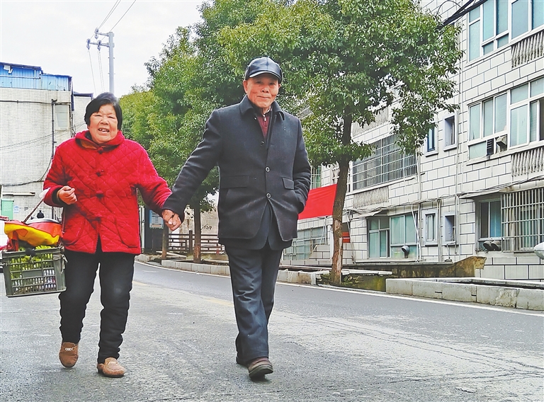 这时,易锡梅也来到集镇,搀着老伴,一步一步,走路回家。8年来,老两口就这样挑着菜筐,每天往返于家和集镇之间。往返一趟是2公里,8年下来就是5800多公里。8年来,他们挑着菜筐,走一段,歇一下,顽强向前的身影,成为小镇人眼中再熟悉不过的画面。