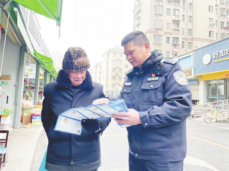 为全方位深化“三大专项行动”,九江市公安局八里湖分局滨兴派出所扎根社区,积极开展工作。工作中,民警积极向群众宣传反诈知识,让商家深入了解电信网络诈骗对个人、家庭、社会所造成的巨大危害,告知群众需谨慎识别网络贷款、面对陌生来电不轻信、蝇头小利不心动。叶 瑾摄