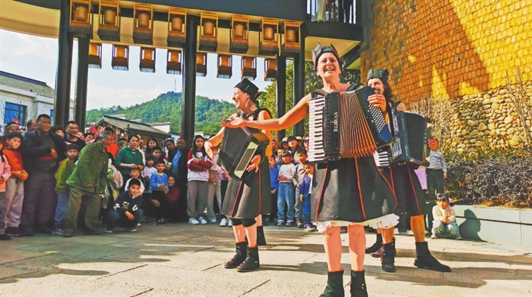 游客和观众,本就是戏剧的一部分。在上剧场工作人员、台湾女孩周雅雯看来,会昌戏剧小镇非常有人情味。令大学生志愿者方雨晗印象最深的,是“淳朴,诚恳,十分可爱”的会昌老人。随着众多海外剧团涌入,越来越多的国际面孔出现在这座地缘不占优势的赣南小城。剧场门口,本地老人会向方雨晗“求教”:“那个是美国人,还是英国人?我以前从来没见过外国人耶。”被关注到的加拿大籍记者中文流利,立刻搭上了腔:“非常有幸成为您认识的第一个‘老外’,咱们合张影留念吧。”老人一听,乐了:“嘿,你普通话比我强啊……”