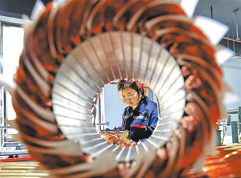 3月28日,位于湖口高新园区的江西芯之力科技有限公司生产车间内,工人们正在加紧赶制电机产品订单。今年以来,该县落实各项惠企政策,各企业抢抓机遇,满负荷生产,全力冲刺首季开门红。通讯员 吴 江摄