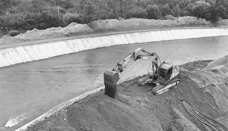 3月25日,永丰县恩江镇水南背村,恩江水毁水利工程修复即将完工,保障灌区农田春耕生产灌溉用水。通讯员 刘浩军摄