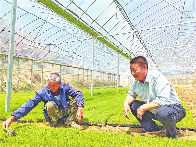 近日,在宜春市袁州区新坊镇烟棚村的育秧大棚,农技专家正为农户讲解适宜温度、病害防治等水稻秧苗的管理技术。据了解,为切实抓好早稻生产,该镇组建12支由党员、农技专家、农村实用人才组成的早稻生产服务队,深入田间地头提供技术指导,确保秧苗育得好、长势旺。翁 琦摄