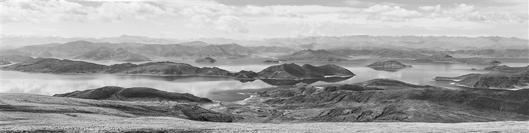 从喀庆拉山上俯瞰羊卓雍措(拼接照片,4月5日摄)。新华社记者 姜 帆摄