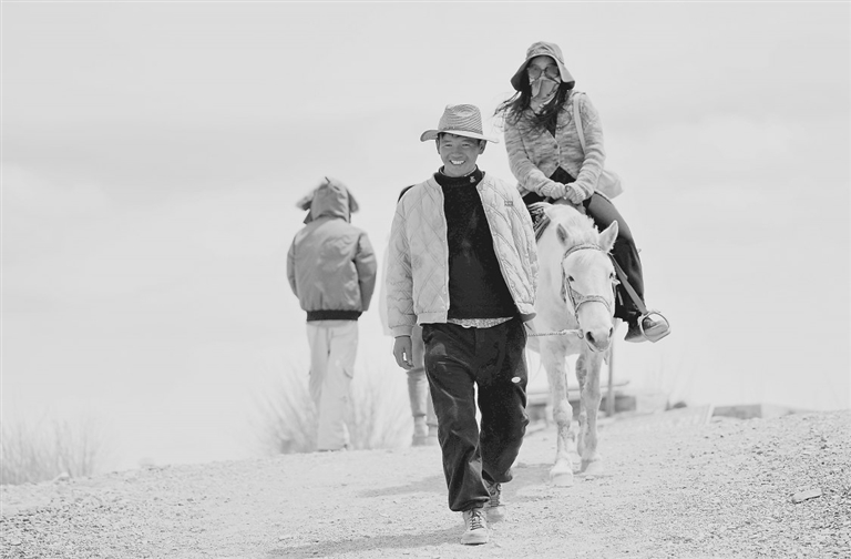 羊卓雍措北岸的村民为游客提供骑马服务(4月5日摄)。 新华社记者 张汝锋摄