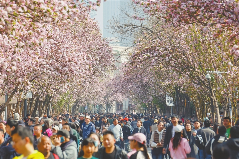 清明假期,各地繁花似锦、春意盎然,人们踏青游玩,乐享美好春光。