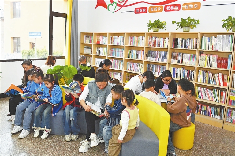 4月6日,横峰县兴安街道城东社区“红湾阅览室”内,孩子们在享受读书乐趣。近年来,该县积极拓展城市阅读空间,打造了一批各具特色的城市书屋、公园书苑、农村书屋等设施,不断丰富居民精神文化生活。