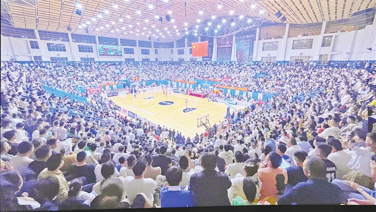 这是一座“魔鬼主场”:3000个座位的萍乡市体育馆,总决赛场内座无虚席,场外超10万萍乡球迷在线上观看比赛直播。