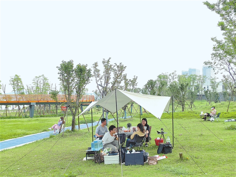 4月14日,雨后的南昌空气清新,市民来到赣江市民公园游玩,享受愉快的周末。