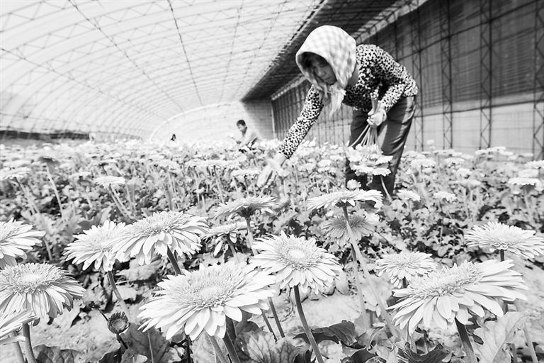 4月17日,河北省唐山市丰南区大新庄镇一家花卉基地的花农在采收鲜花。谷雨将至,各地抢抓农时开展农业生产,田间地头一派生机勃勃的忙碌景象。新华社发 (李秀清摄)