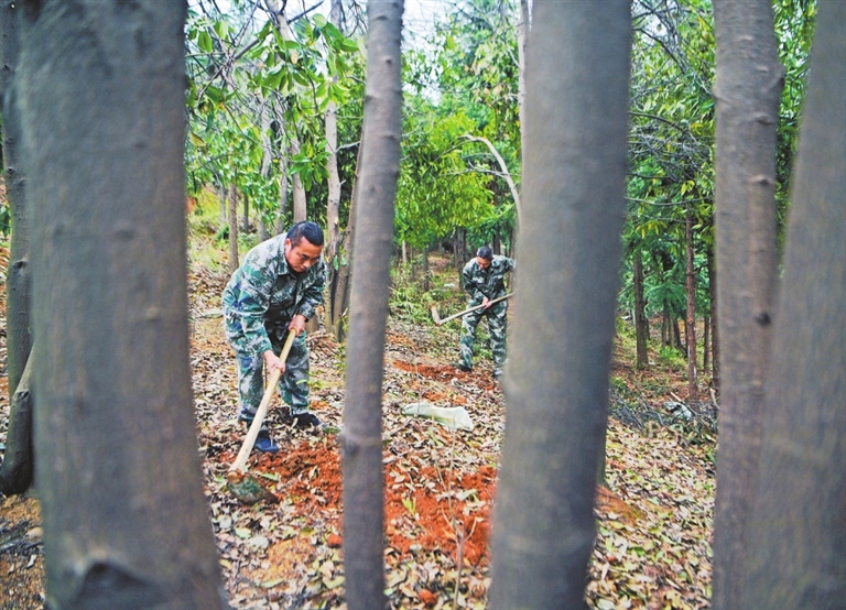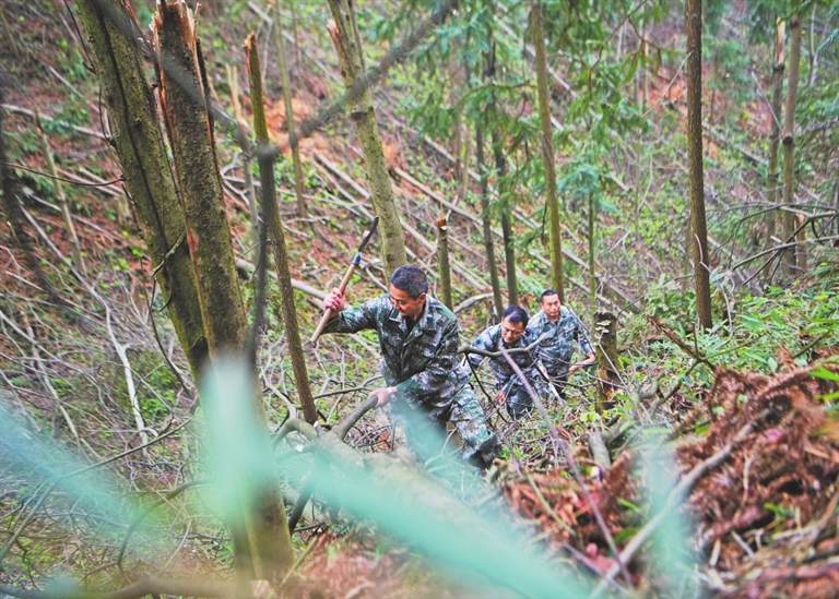 3月27日清晨,萍乡市五峰林场的五峰管护站站长刘泽新扛起铁锹,带领护林队员们钻进莽莽林海,栽种天然防火树种——木荷。刘泽新1997年从事护林工作,27年来,他用脚步丈量了林场里的山岭沟壑。寒来暑往,陪伴他的铁锹换了一把又一把,唯有对守好林子这件事痴心未改。