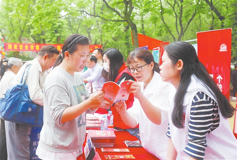 4月15日,全民国家安全教育日当天,东湖区委国安办组织政法委、发改委、司法局、文广新旅局、卫健委、政数局、金融服务中心、生态环境局等区属单位,在人流密集的八一公园开展集中宣传,通过推送国家安全宣传内容、开设国家安全宣传栏、布置国家安全宣传展板、发放国家安全知识宣传单,以及面对面讲解等形式,向群众全方位、多角度宣传国家安全知识。同时,鼓励群众在日常生活中勇敢地与危害国家安全的行为作斗争,引导群众以实际行动维护国家安全。
