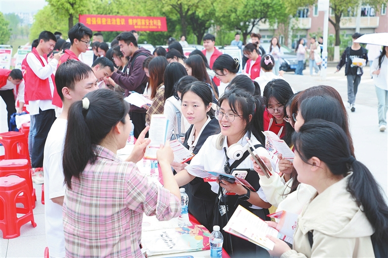 近日,赣州蓉江新区党工委国安办来到赣南师范大学开展“全民国家安全教育日”进校园宣传活动。活动重点针对即将毕业的大学生,特别是对外交流学生,通过集中宣讲、实例展示、知识竞答等方式,向学生们普及国家安全的重要性。钟万汕摄