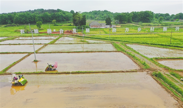 4月18日,吉安市吉州区兴桥镇钓源村,农户驾驶插秧机进行早稻插秧作业。连日来,当地农民抢抓农时开展早稻插秧作业,田间地头一派繁忙景象。近年来,该市大力推广早稻集中育秧和机械化插秧,提升水稻生产机械化水平,为粮食稳产增效打下坚实基础。本报全媒体记者 吴文兵摄