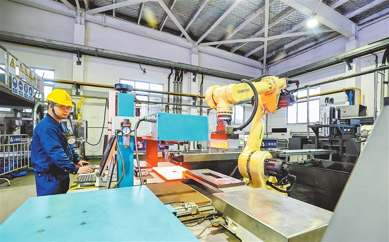 4月17日,位于湖口高新园区内的江铜铅锌金属有限公司生产线上,技术工人正在操控智能机械臂进行生产作业。近年来,该企业持续进行技术创新与智能设备应用,不断推动生产线自动化改造升级,提高产品品质和生产效率。