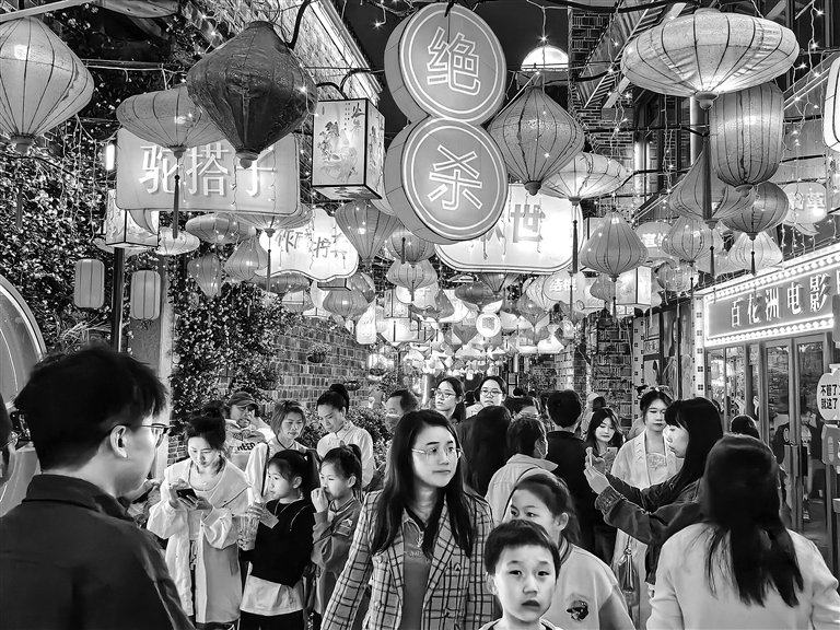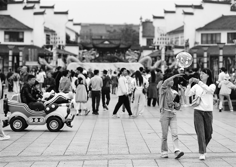 5月1日,南昌万寿宫历史文化街区热闹非凡。“五一”期间,万寿宫街区精心策划“江湖入梦——全民英雄会”主题活动,向游客展示江西深厚的人文底蕴。 本报全媒体记者 蔡铖歌摄