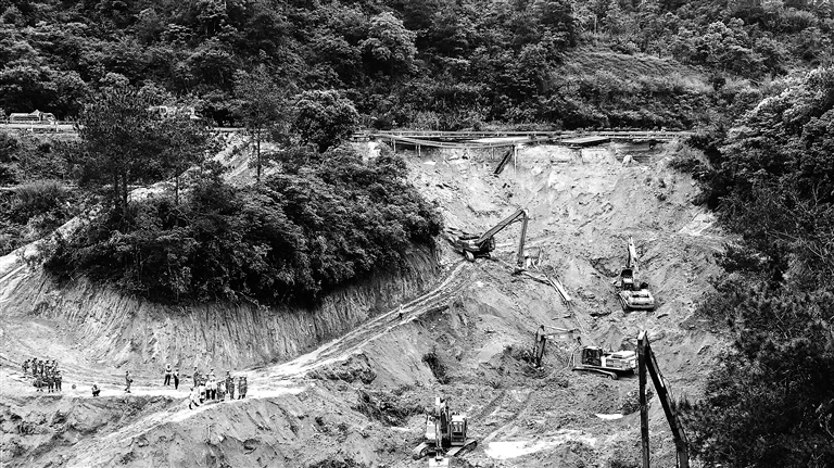 塌方灾害发生后,梅州全力开展现场抢险救援工作,共调派应急、公安、消防、卫健、交通、通信等各类救援力量577人,调集各类救援车辆64辆,对事故区域进行网格化救援,开展地毯式搜救;并组织医疗专家救治伤员,共组织12名省级医疗专家、20名市级医疗专家、30辆救护车、200多名医护人员开展多学科会诊,采取针对性救治措施,尽最大努力救治受伤人员。