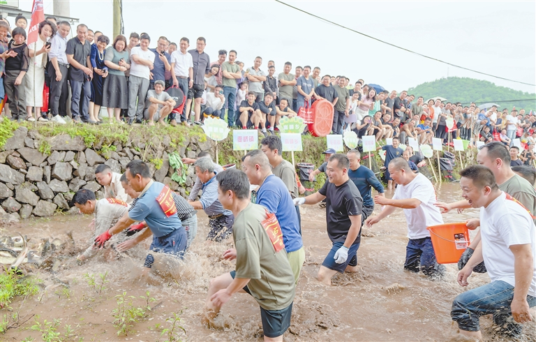 4月29日,上饶市广丰区田间捕鱼大赛在霞峰镇方村村举行,数百名群众现场体验捕鱼的乐趣。本报全媒体记者 涂汉林摄