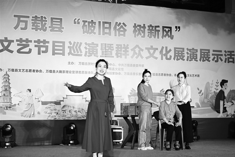 5月6日晚,万载县“破旧俗 树新风”移风易俗文艺节目巡演暨群众文化展演展示活动在县新时代文明实践中心广场举行,该县各社区群众文化艺术团参演。
