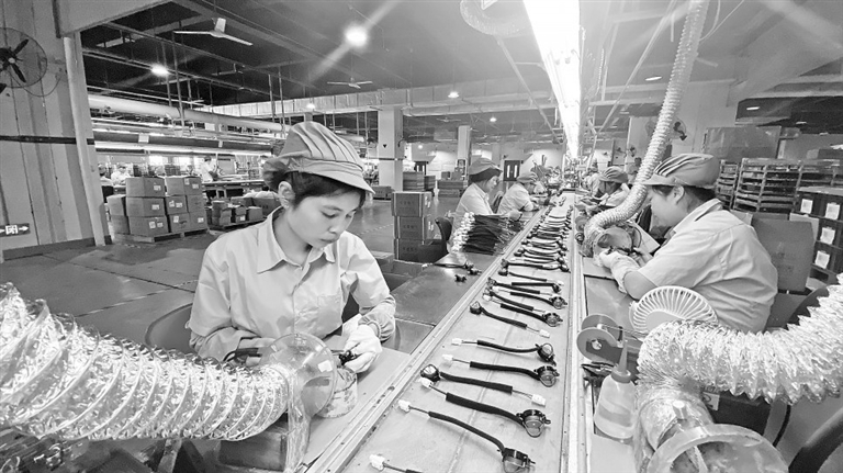 5月8日,江西永丰航盛电子有限公司“技能大师”刘金友班组正在生产汽车扬声器等产品。近年来,永丰县总工会高标准打造产业工人技能提升基地,支持企业开展“师带徒”“匠带兵”行动,大力提升产业工人专业技能。