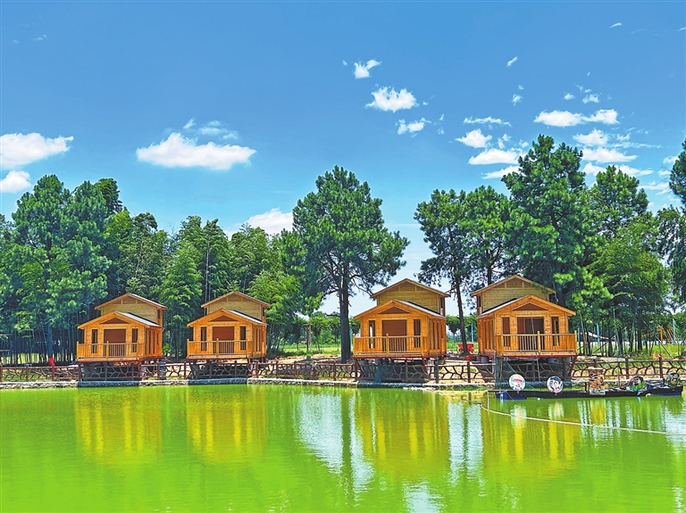 2019年,宋卫保引进投资商,在东边村流转了200余亩林地,建起了锦园生态景区,引进了观光小火车、彩虹滑道、网红桥等20多个游玩项目,还提供果蔬采摘、农耕研学等服务,探索出“村集体+公司+农户”的方式,吸引农户入股参与分红。
