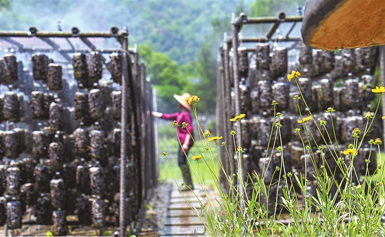 5月17日,靖安县宝峰镇宝田村小湾组木耳基地,村民在摆放、固定菌棒。近年来,该镇按照“一村一产业”的要求,引导村民利用生态资源优势,因地制宜大力发展黑木耳产业,将木耳发展成为乡村振兴的希望产业。 通讯员 黄 敏摄