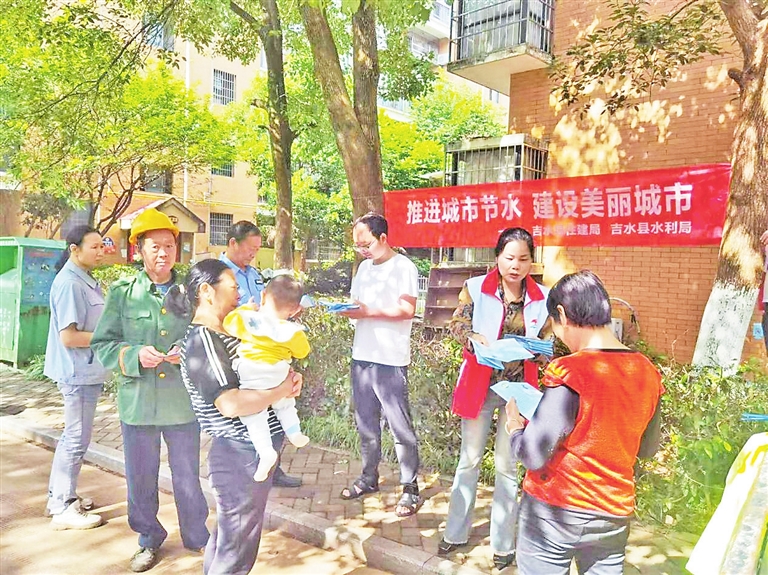 日前,吉水县水利局联合县住建局深入滨江国际城小区开展第33届全国城市节水宣传活动。此次宣传活动主题为“推进城市节水,建设美丽城市”,通过加强节水理念、节水知识宣传普及,不断提升市民节水意识和参与度,推动城市节水减排、绿色低碳理念深入人心,让节约用水成为每个公民的自觉行动。图为工作人员在吉水县滨江国际城小区开展节水宣传。黄 婷摄