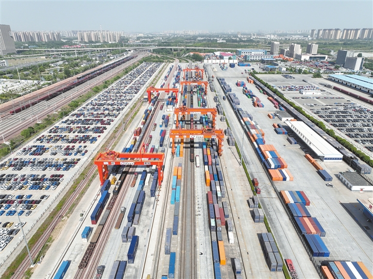 如今,依托交通区位和铁路枢纽优势,河南郑州已成为中部地区唯一获批的中欧班列集结中心。从郑州出发,货物能够通达40多个国家、140多个城市。今年以来,河南中欧班列已开行超700列,其中中欧班列(郑州)开行超600列。河南宝德行国际货运代理有限公司总经理盛立坦言:“现在郑州国际陆港的集装箱非常紧俏,要提前一个月预定。”忙碌的“钢铁驼队”,开创了亚欧国际运输的新格局,为世界经济发展注入新动力。