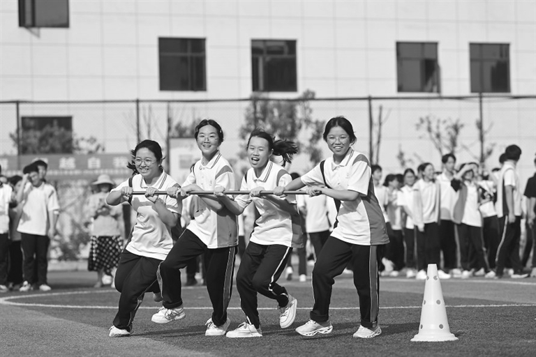 5月24日,万载县第三中学初三学生在体育场进行趣味心理拓展活动。随着中高考临近,该县组织各初高中学校开展心理拓展活动,帮助学生们释放压力,迎接即将到来的升学考试。特约通讯员 邓龙华摄