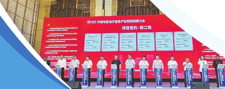 5月31日,以第十三届中博会举办为契机,江西牵头举办中部地区电子信息产业链招商推介会,大力推介重点项目和支持政策,共同探讨合作与发展机遇。现场签约电子信息产业项目38个。