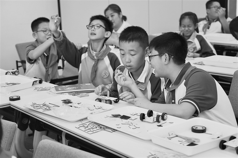 6月2日,南昌市育新学校学生在创新课堂上学习制作太阳能小车。该校组织40名五年级学生,来到赣江新区国际创新未来馆参观学习,培养学生们爱科学、学科学、用科学的科技素养。