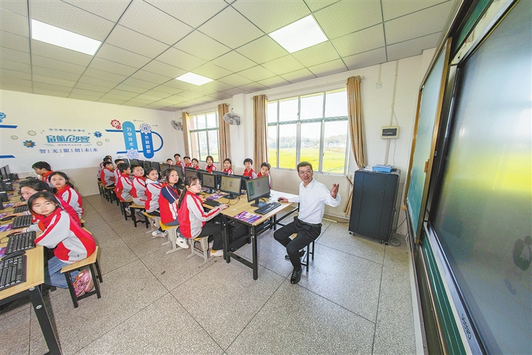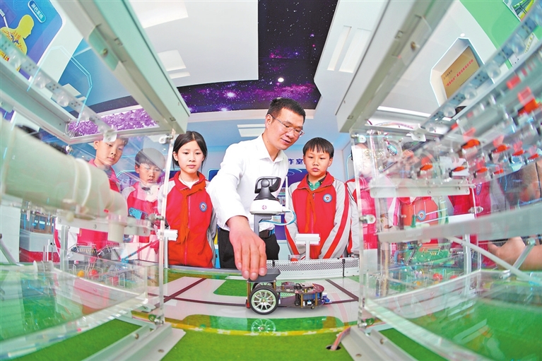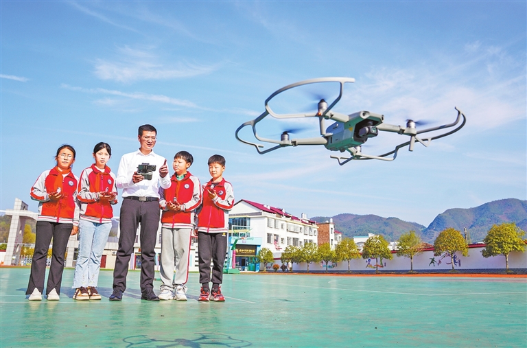 然而,从设想到现实,如何开启科学教育的第一步,王绍兵犯了难。没有设备,就自己动手组装零件;师资缺乏,就一人身兼数职……“当孩子们第一次飞起无人机时,我看到了他们眼里的光。”这也是王绍兵持续研究、更新科学课堂的动力。