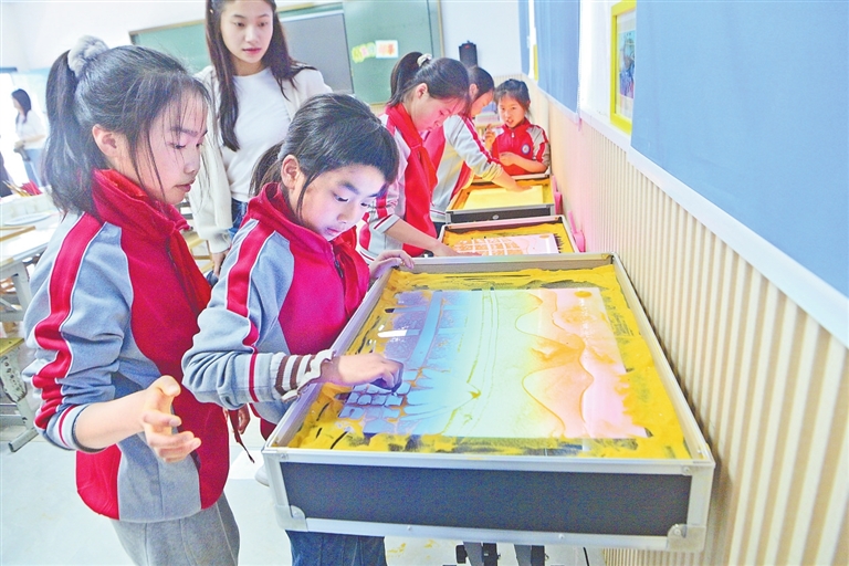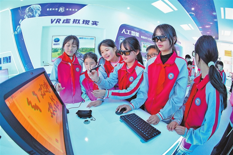 操场上,学生在老师的指导下,“丝滑”地操纵无人机盘旋翱翔;课堂里,3D动画设计、智能机器人编程等特色课程轮番“上演”;科创中心,孩子们戴着3D眼镜,手持触控笔体验VR虚拟交互平台……这富有科技感的一幕幕,在萍乡市湘东区排上镇大路里小学已成常态。